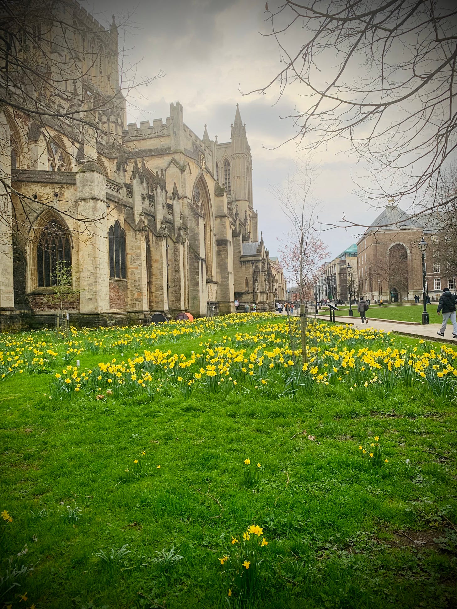 overgrown fields of wild daffodils that grace the gravitas of the bricks and mortar placed hundreds of years ago,